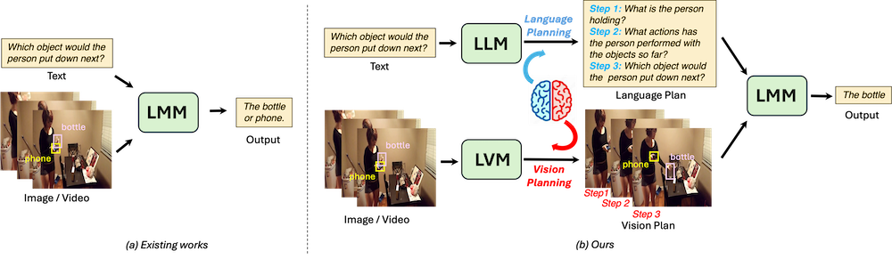 Using Left and Right Brains Together: Towards Vision and Language Planning